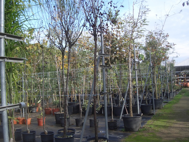 Todas las especies las tenemos en contenedores para poder ser plantadas todo el año. Podemos encontrar árboles de jardines caducos, perennes, árboles frutales, coníferos y palmáceos.